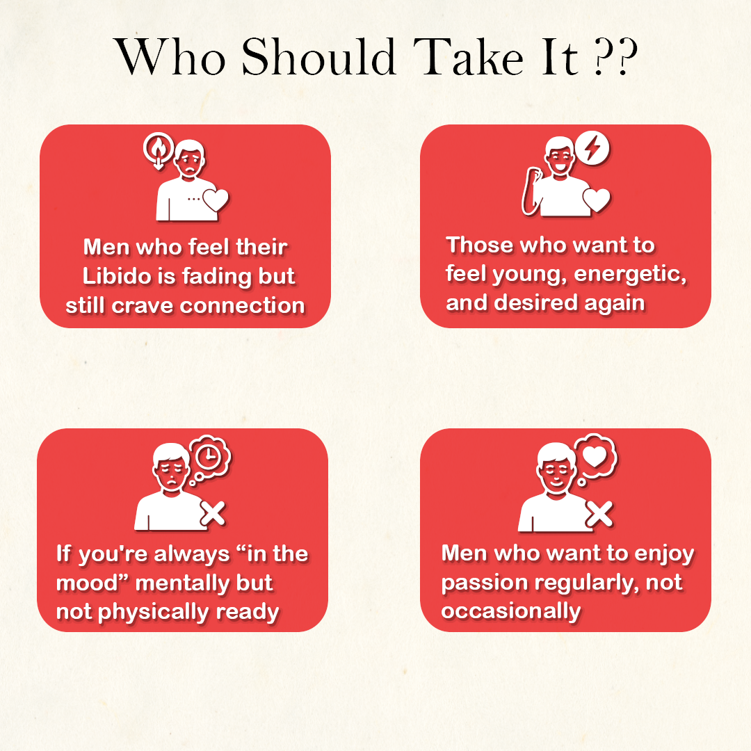 | Safed Musli | A natural aphrodisiac that enhances sexual performance, stamina, and energy — perfect for daily intimacy support. |