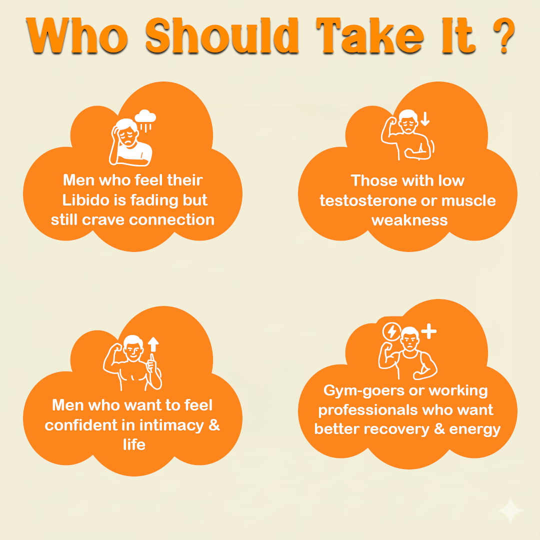| Gokshura | Supports healthy testosterone levels, improves strength, and enhances sexual wellness and physical performance. |